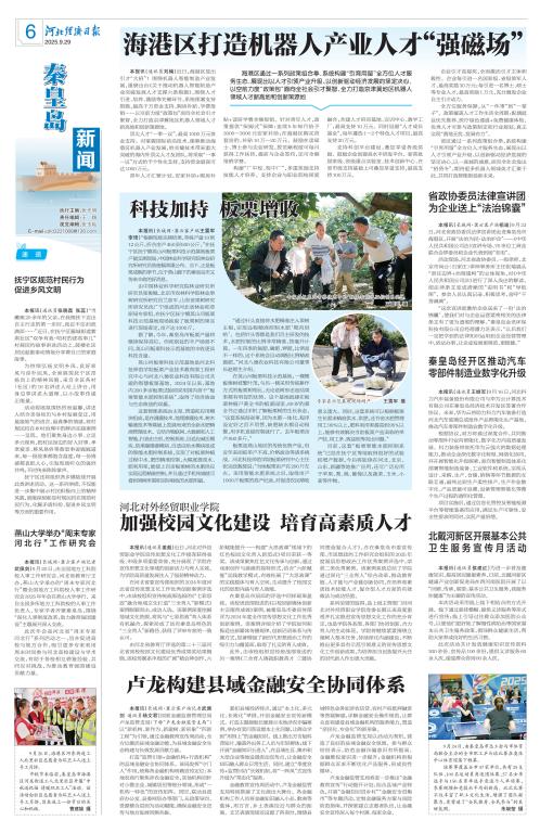 《河北经济日报》2025年9月29日第六版秦皇岛新闻报道