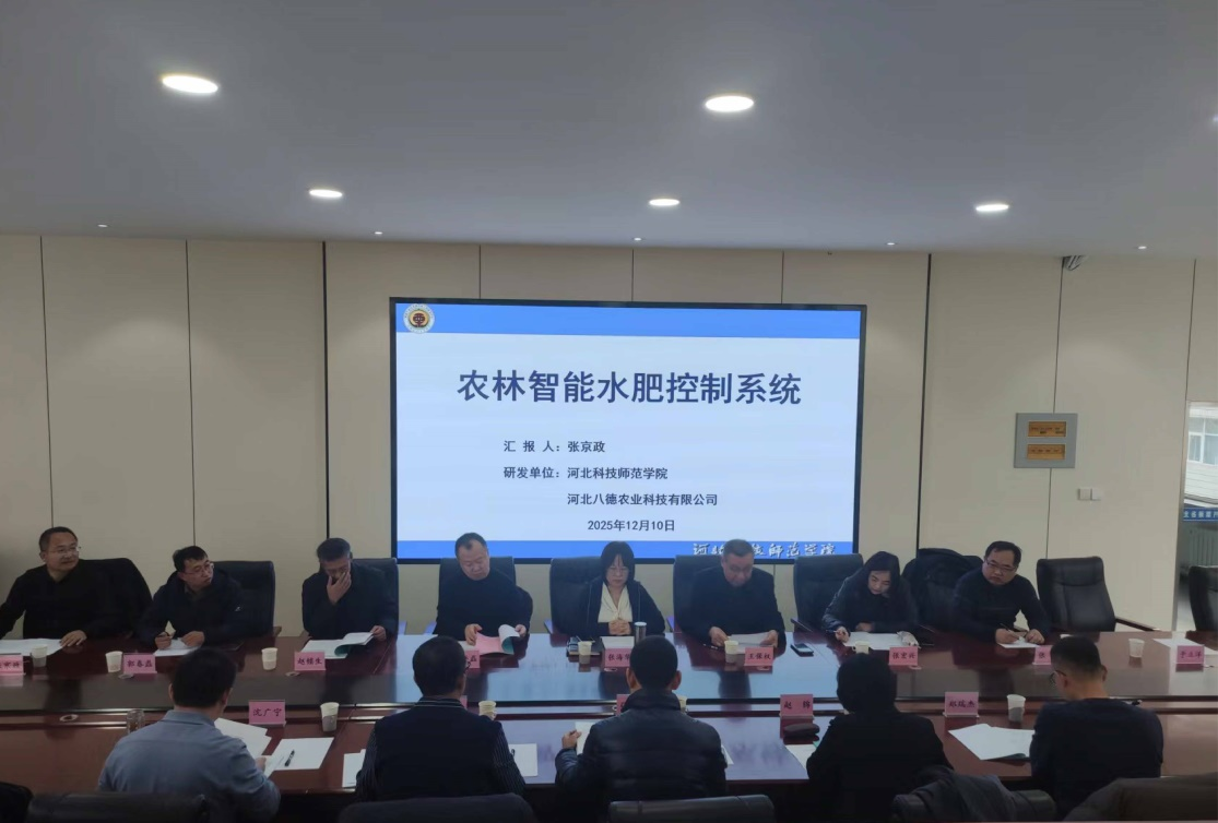 2025年12月10日,由秦皇岛市生产力促进中心组织专家评价组,对我校板栗产业技术教育部工程研究中心育种栽培团队联合河北八德农业科技有限公司共同研发的“农林水肥智能控制装备系统”项目进行了成果评价。科研处处长张海华、成果管理科科长焦洪磊及项目组成员出席评价会议。